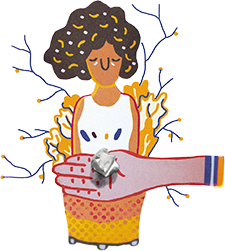 子供の頃、自分のベッドに横になった時ちょうど真上にあった天井の木の節をずっと眺めていたことを強烈に思い出した。人の顔に見えてすごく怖くなる日もあれば、宇宙に浮かぶ大きな星に見えて心臓が高鳴るときもあった。ベッドの下の暗闇も植物も雲も、想像力次第でいろんな世界が広がる。