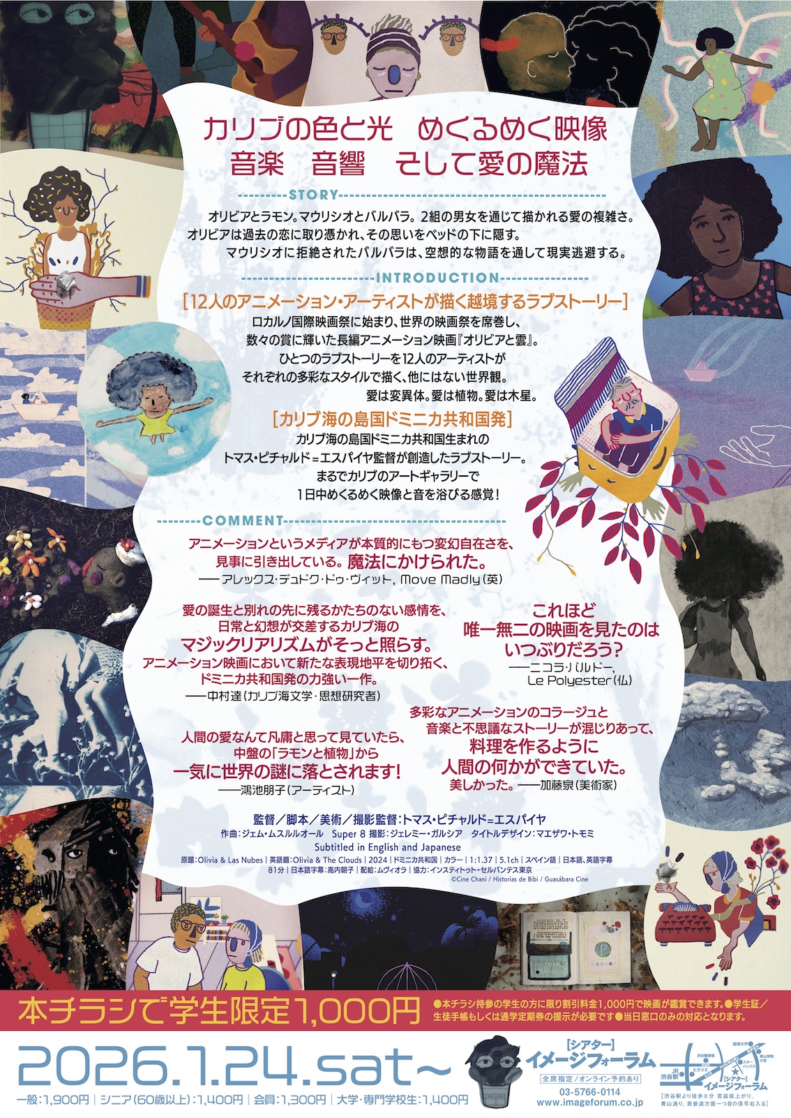 愛の誕生と別れの先に残るかたちのない感情を、日常と幻想が交差するカリブ海のマジックリアリズムがそっと照らす。アニメーション映画において新たな表現地平を切り拓く、ドミニカ共和国発の力強い一作。